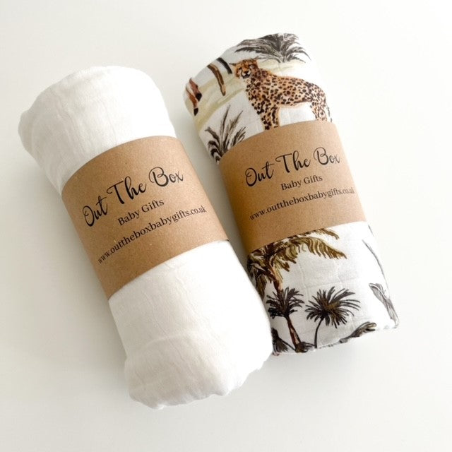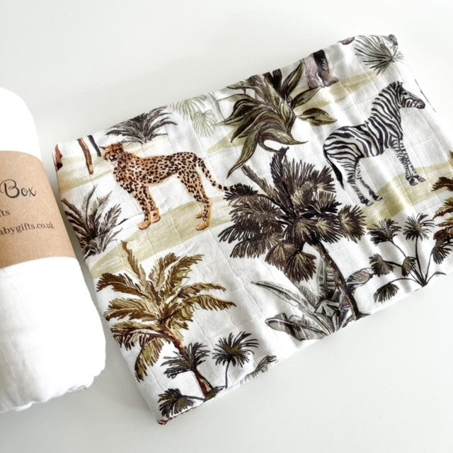 Dark Safari & White Muslin Swaddle Set