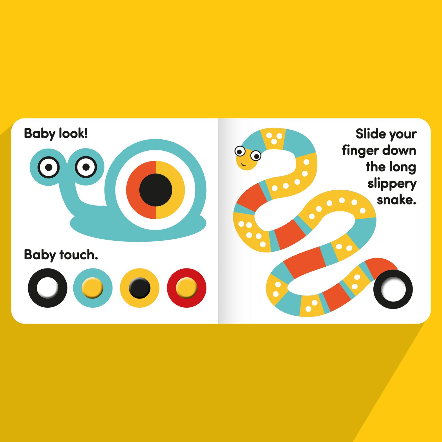 210 x 210mm, board book featuring 10 pages packed with touch-and-feel textures, embossing, a mirror, die-cuts, sliders, and a cover wheel