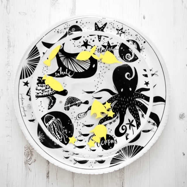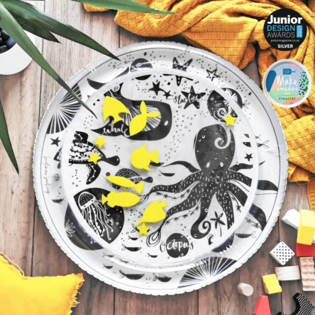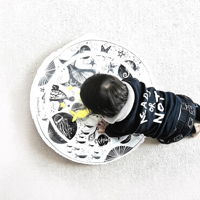 Meet the perfect monochrome tummy time activity water mat made by While and Wonder. It has been created to enhance visual and physical development for babies. This baby water mat features engaging sea themed illustrations, to help with learning through play and should be used to enhance the quality of your baby's tummy time activities.