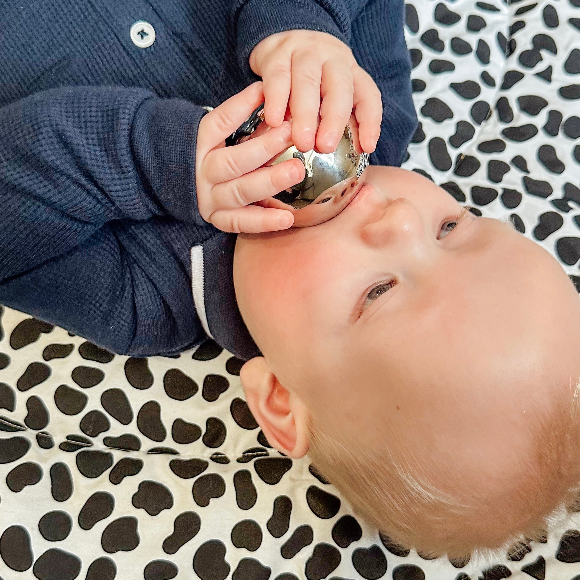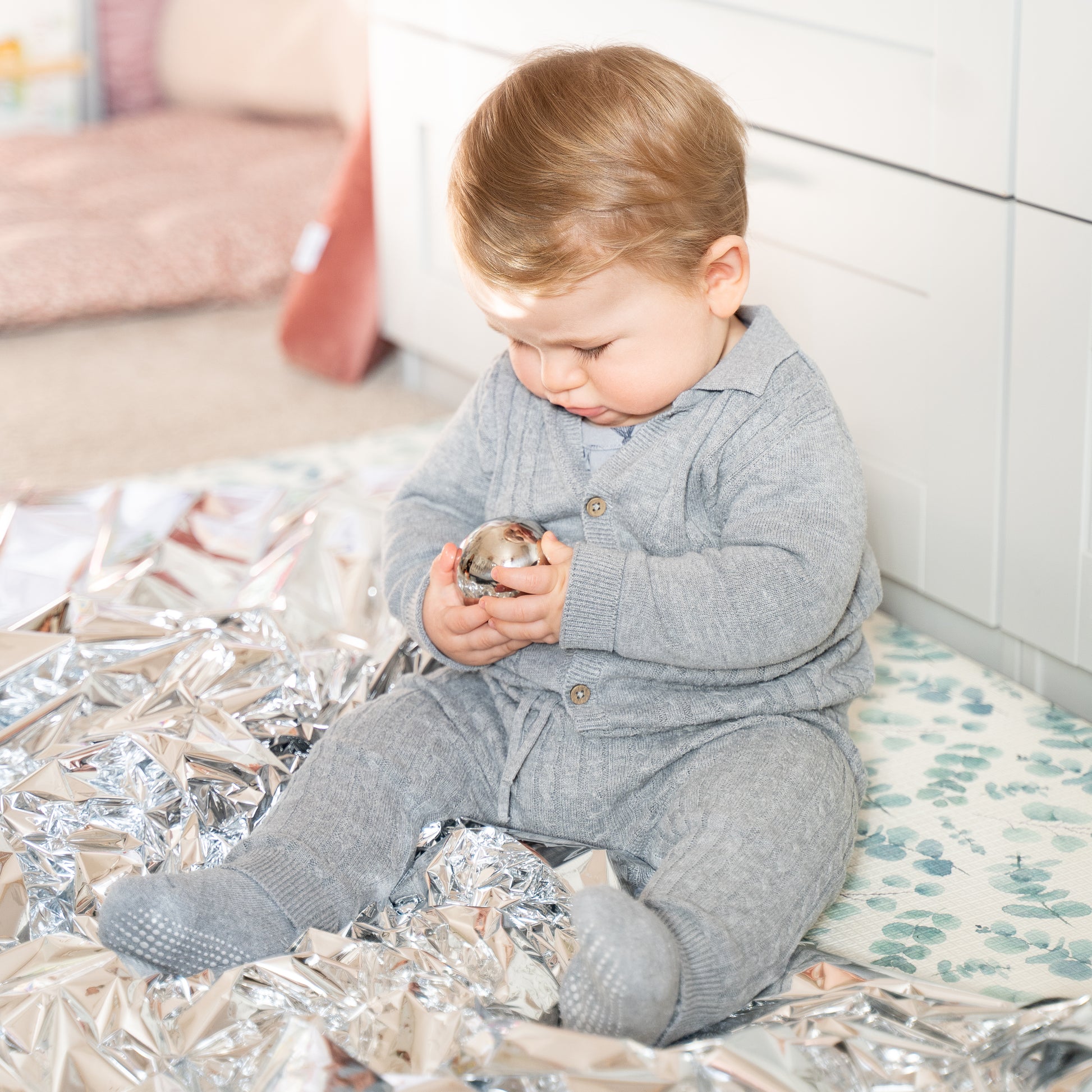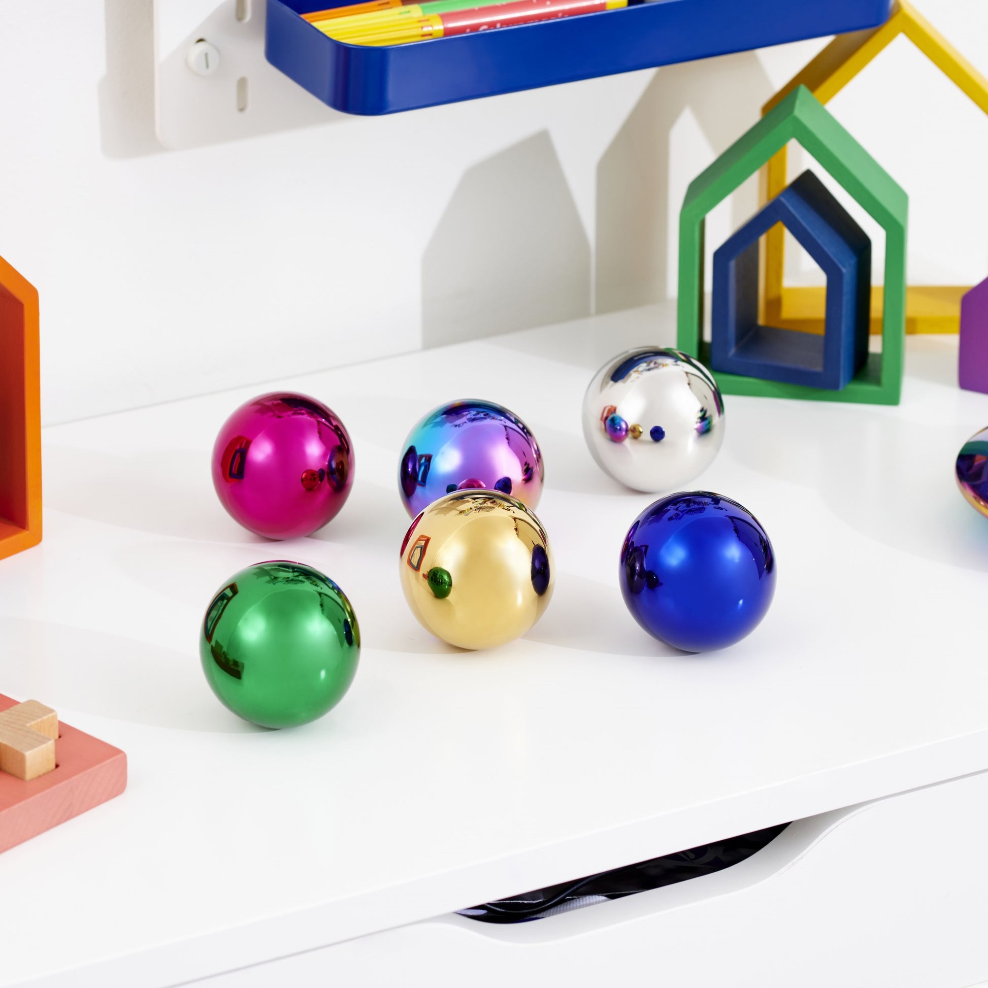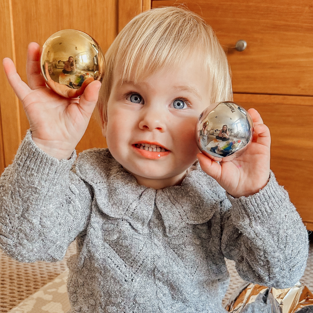 Mirror Magic: The shiny surface of these balls distorts reflections, making everything look wobbly and odd, just like a funhouse mirror. Babies will be captivated by seeing themselves and their surroundings in such a playful way.
