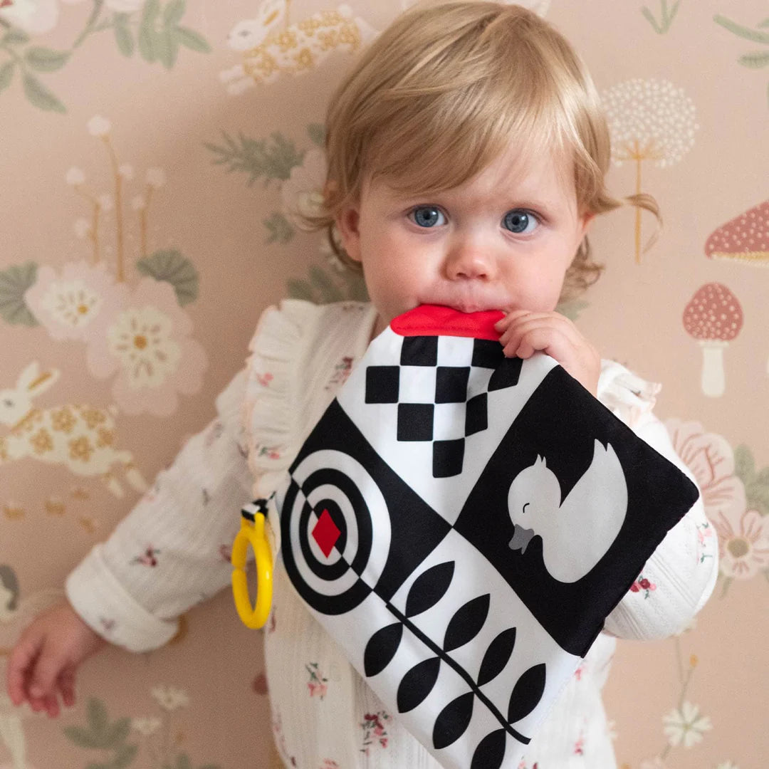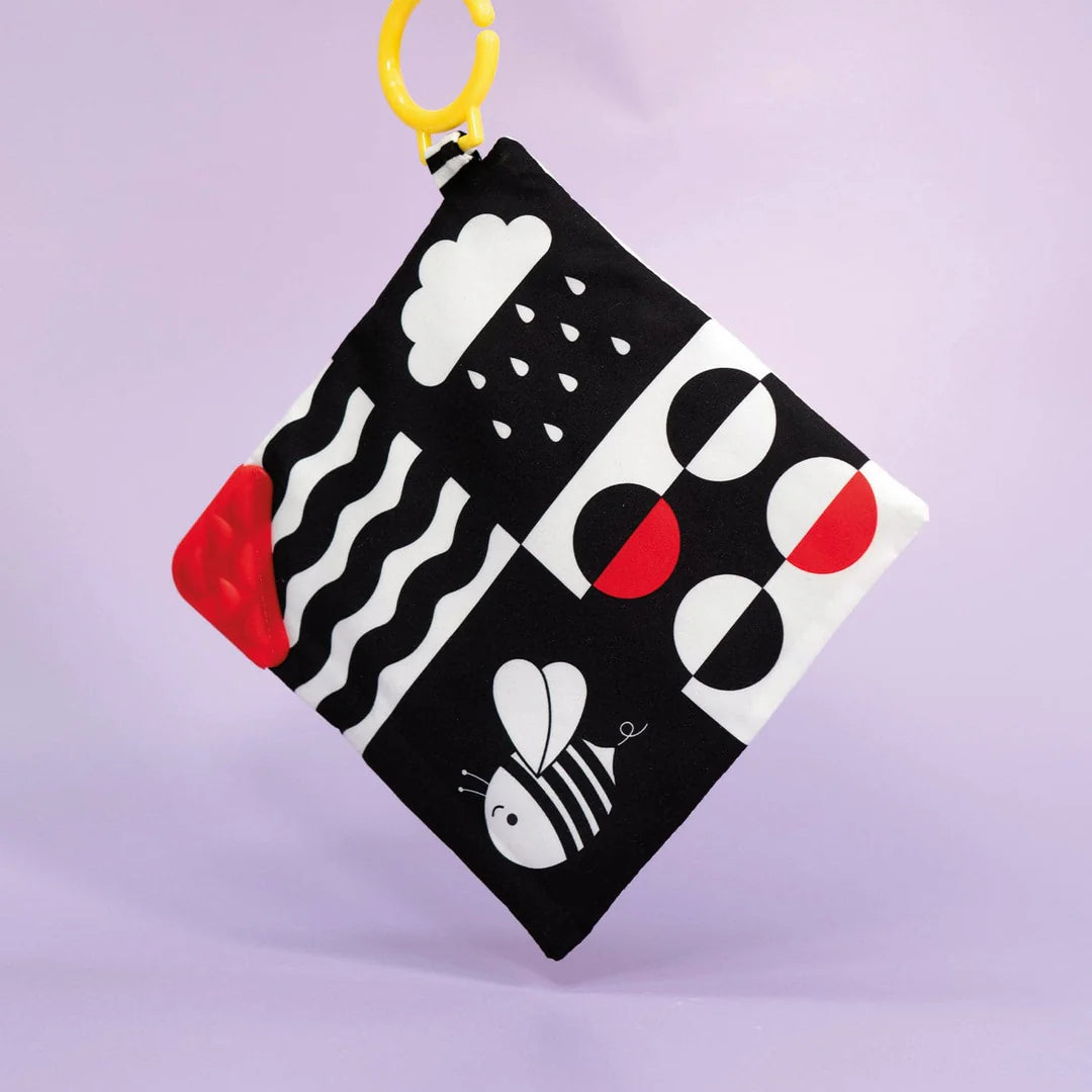 Give your baby's eyes & brain a treat with its striking illustrations both indoors and out —plus, it comes with a handy pram & car seat attachable ring!