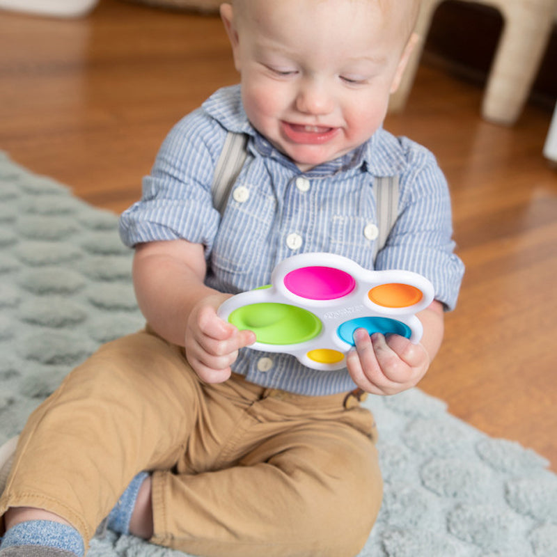 So simple, so satisfying—once they start, they won't want to stop! Dimpl is the go-to sensory toy for tiny hands. With five bright silicone bubbles nestled in a robust frame, little ones can poke, pop, press, and explore to their heart’s delight.