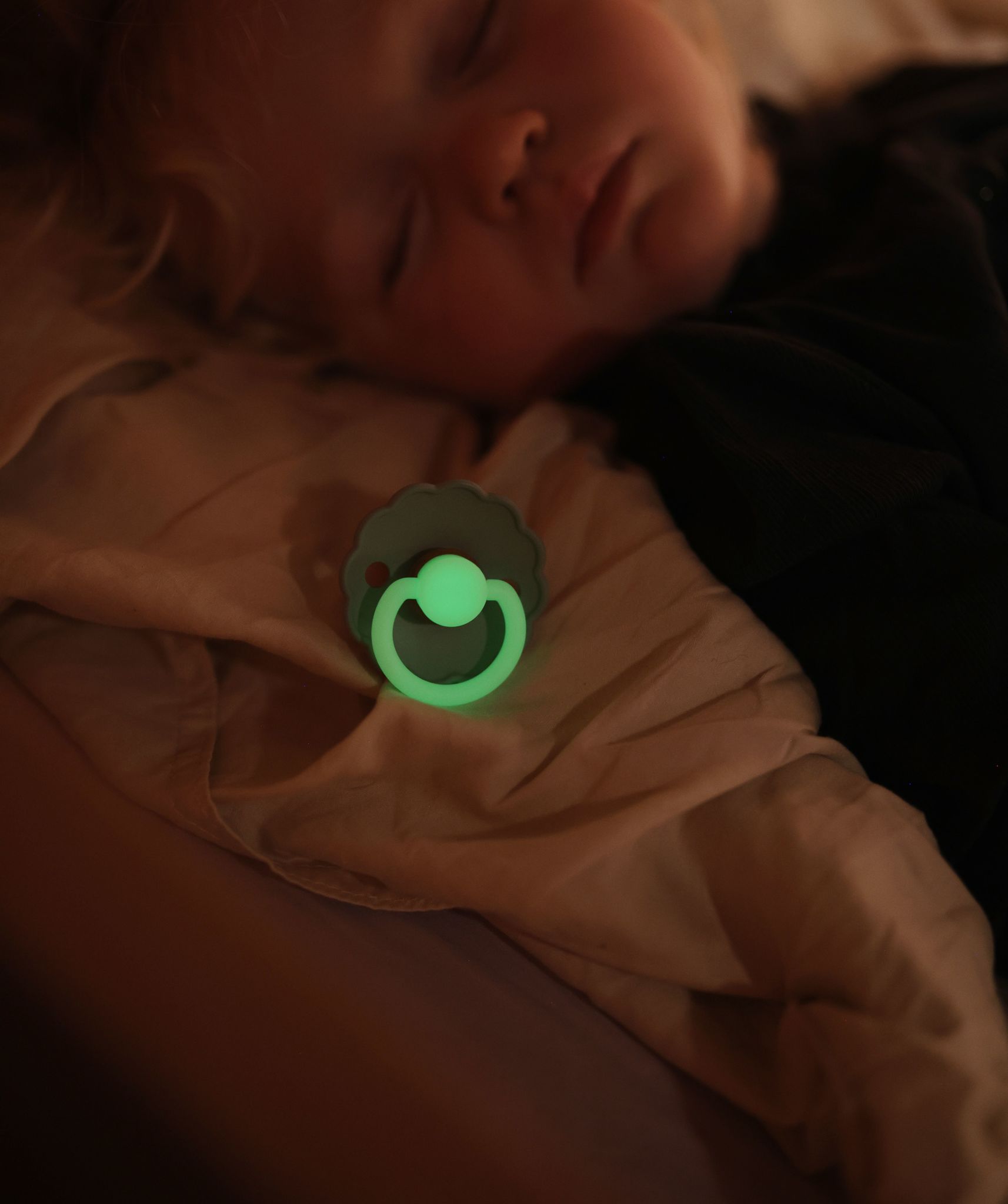 - Pacifier ring and knob glow in the dark for easy visibility at night.