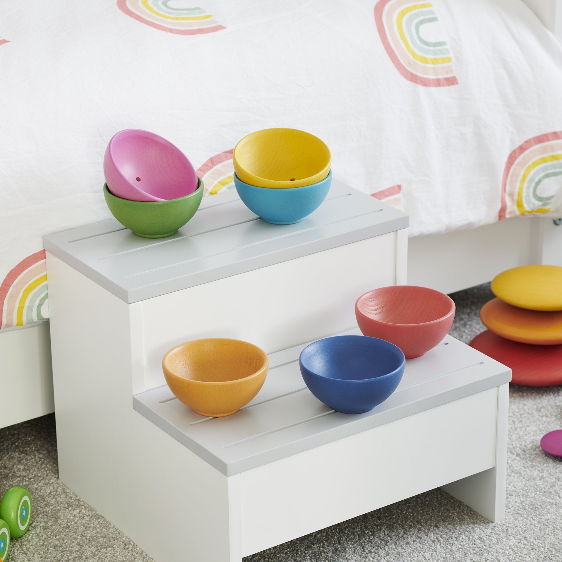 Check out our TickiT® Rainbow Wooden Bowls, crafted from gorgeous smooth solid beechwood. Each bowl showcases a lovely natural woodgrain finish and comes in the seven vibrant colours of the rainbow. They're just the ticket for stacking, sorting, colour matching, or creating whimsical little worlds – plus, they make a fab spot for stashing tiny treasures.