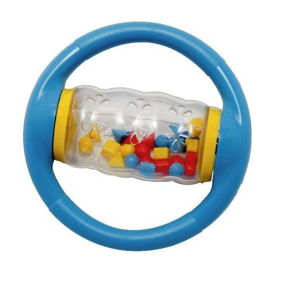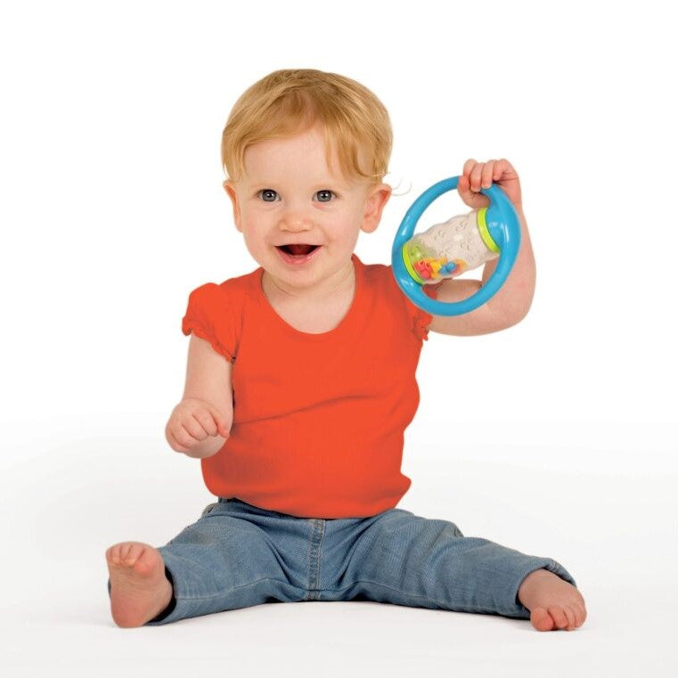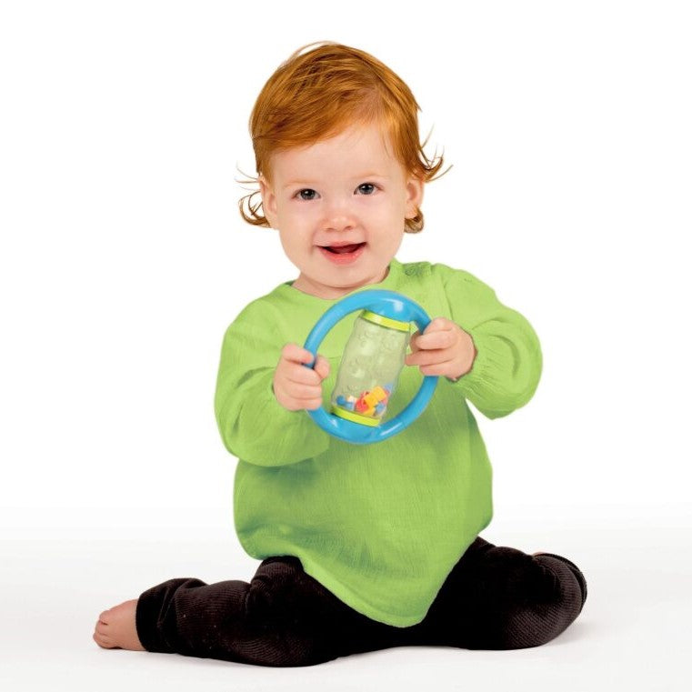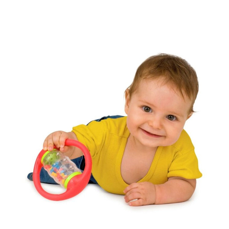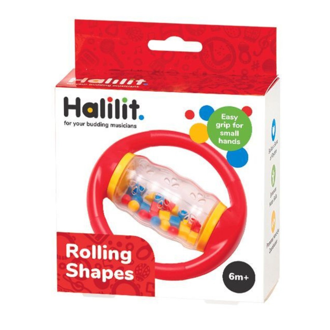 Dive into the joy of rolling and rattling with the Halilit Rolling Shapes! This clear spinning tube is packed with bright geometric beads that make lovely sounds when you shake or spin it. With two easy-to-grab handles, it’s just right for tiny hands to hold and have a blast.