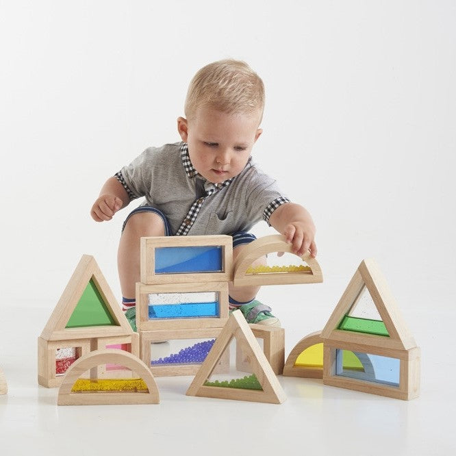 Get ready to dive into sensory fun with our TickiT® Sensory Blocks! This awesome set features 16 rubberwood blocks in four funky shapes: square, rectangle, triangle, and semicircle. Each block is packed with sensory surprises like beads, clear acrylic, vibrant sand, and glittery water—seriously, it’s a sensory wonderland!