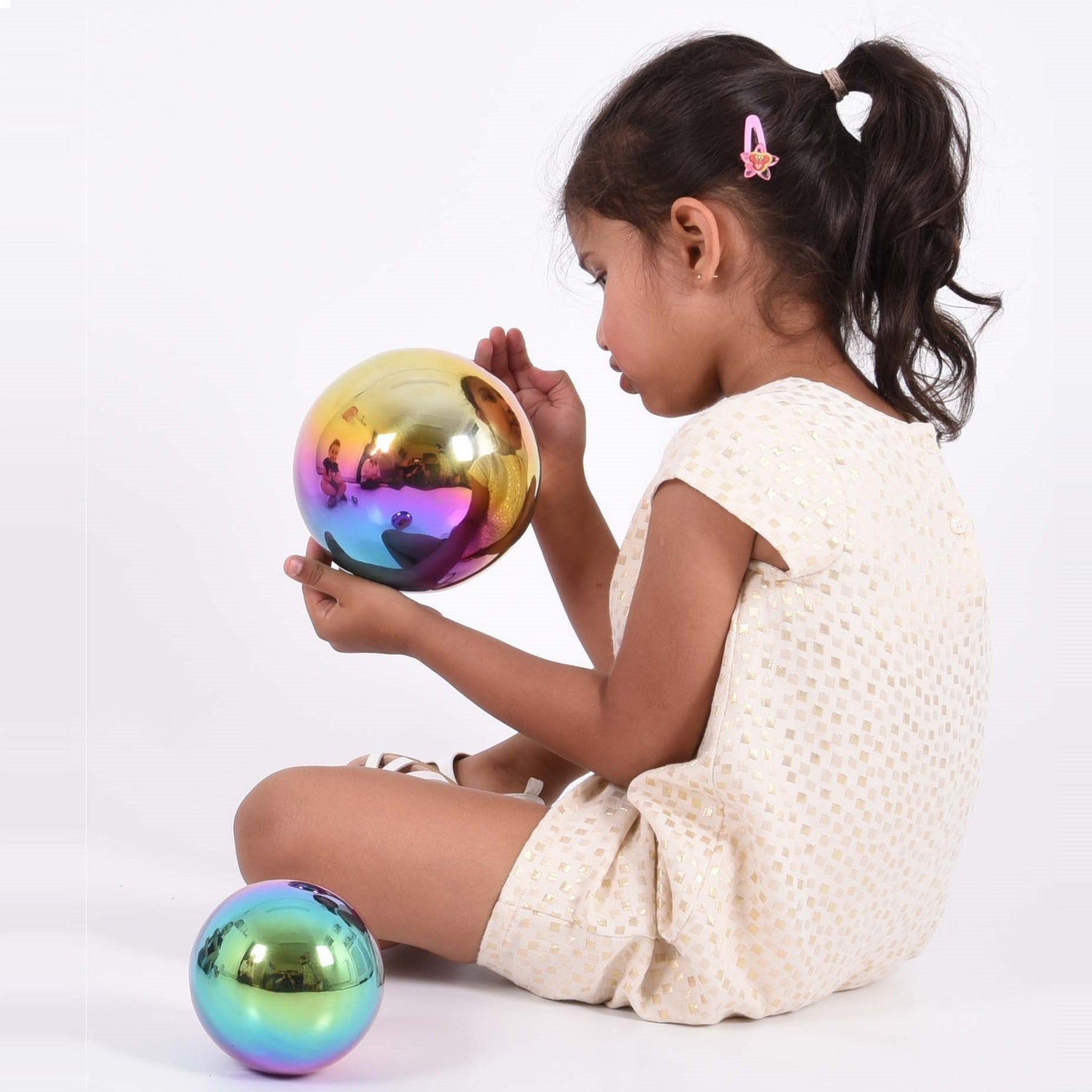 Jump into a vibrant world of fun with the Sensory Reflective Colour Burst Balls from TickiT®. These tactile, reflective beauties twist your view of reality in the most entertaining way. You get a set of four mirrored balls, all in different sizes—perfect for all sorts of play.