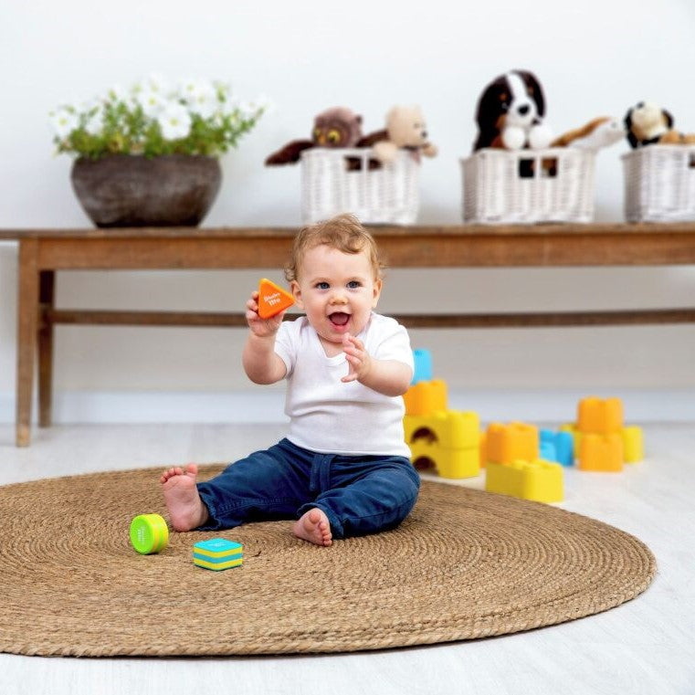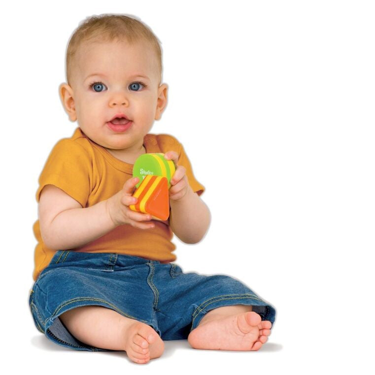 Bright, colourful shape shakers in 3 different shapes which create a gentle sound.