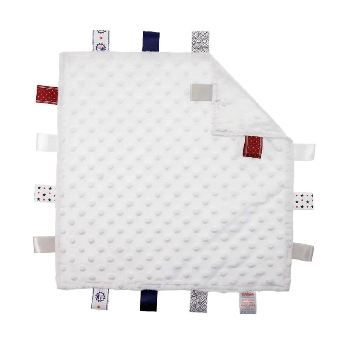 Features sensory ribbon tags for little hands to touch, feel, and have a blast with.